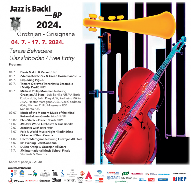 Tradicionalni Festival Jazz is Back! BP i ovu, 25. godinu zaredom, održat će se u Grožnjanu od 4. do 17. srpnja, a na kojem će se održati 14 koncertnih večeri s nastupima eminentnih jazz i blues glazbenika iz cijelog svijeta.
