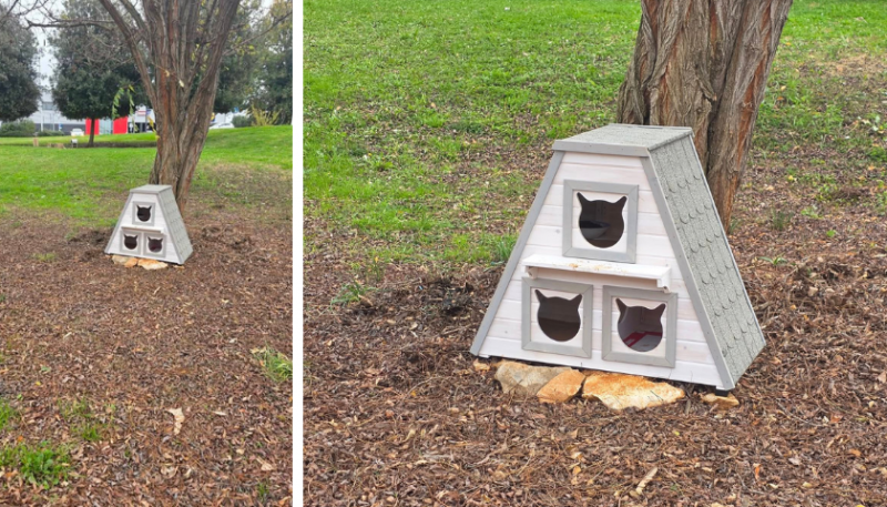 Zahvaljujući angažmanu vrijednih volonterki udruge Šape Rovinj-Rovigno te uz suglasnost Grada Rovinja , mace koje borave u blizini K-centra dobile su vlastitu kućicu. U kućici se nalaze zdjelice koje mogu napuniti i građani tijekom svojih kupovina u obližnjim trgovinama, čime se dodatno olakšava briga za napuštene i ulične mačke.