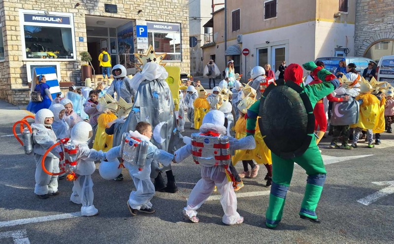 U suncem okupanom prijepodnevu pusnog utorka, mališani Dječjeg vrtića Medulin u maškaranoj su povorci prošetali Medulinom. Četiri skupine matičnog vrtića sa gotovo osamdesetoro mališana u pratnji odgojiteljica odjenuli su danas svoje grupne maske i prošetali od vrtića do župne crkve sv. Agneze gdje su se susreli sa velikim medulinskim maškarama.
