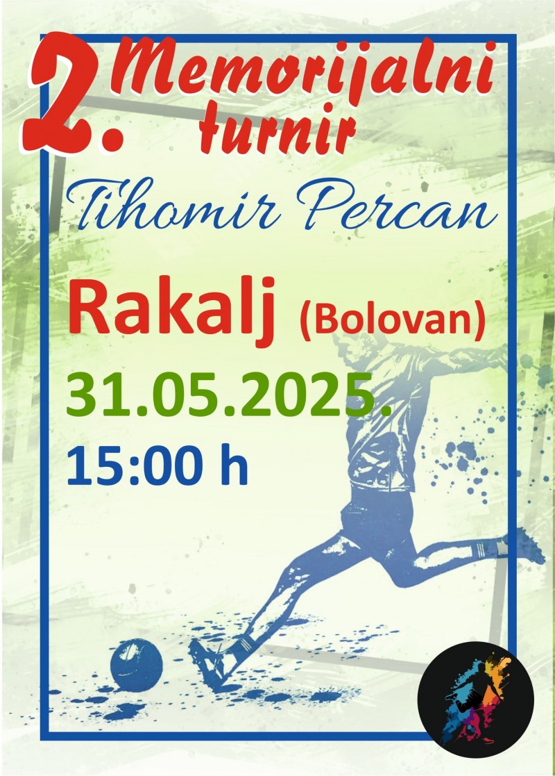 U subotu, 31. svibnja 2025., na igralištu u Raklju (Bolovan) održava se 2. Memorijalni malonogometni turnir “Tihomir Percan”, s početkom u 15:00 sati. Turnir okuplja osam ekipa podijeljenih u dvije grupe: