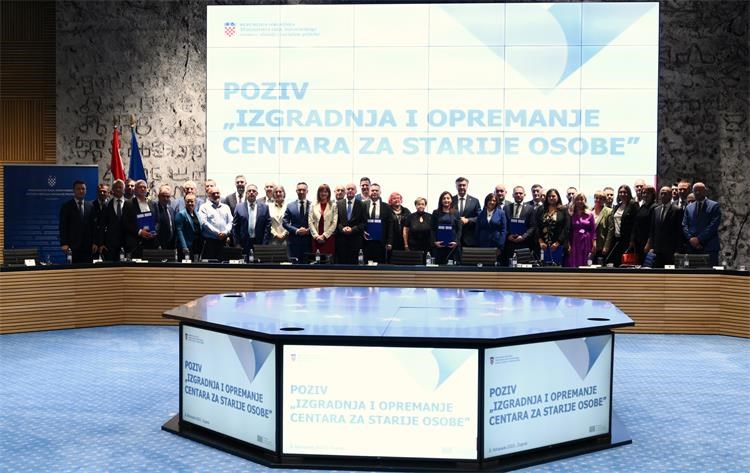 Predsjednik Vlade Andrej Plenković i ministar rada, mirovinskoga sustava, obitelji i socijalne politike Marin Piletić uručili su danas ugovore za izgradnju i opremanje 18 centara za starije osobe u vrijednosti 159 milijuna eura, a koji će imati nešto više od 1800 smještajnih kapaciteta i izvaninstitucijskih usluga za nešto više od 4500 korisnika
