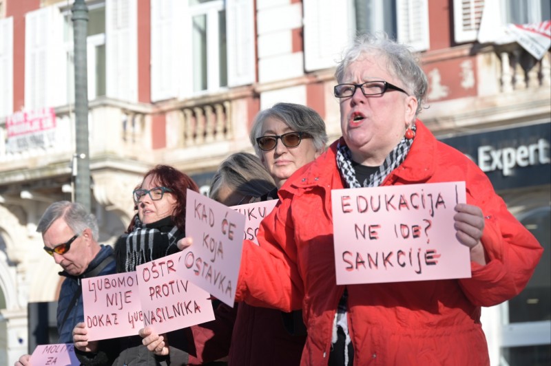 Na tržnici kraj fontane u Puli danas je u 10 sati održan prosvjedni performans 'Ne gazi moju ružu', u organizaciji članica i članova Radničke fronte, posvećen borbi protiv nasilja i ubojstava žena te obrani ženskih prava.