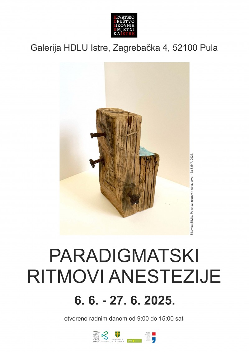 S iznimnim zadovoljstvom pozivamo vas na otvorenje skupne izložbe u sklopu tematskog projekta HDLUa Istre "Paradigmatski ritmovi anestezije", koje će se održati u petak, 6. lipnja 2025. u 20 sati u galeriji HDLUa Istre, Zagrebačka 4, Pula.