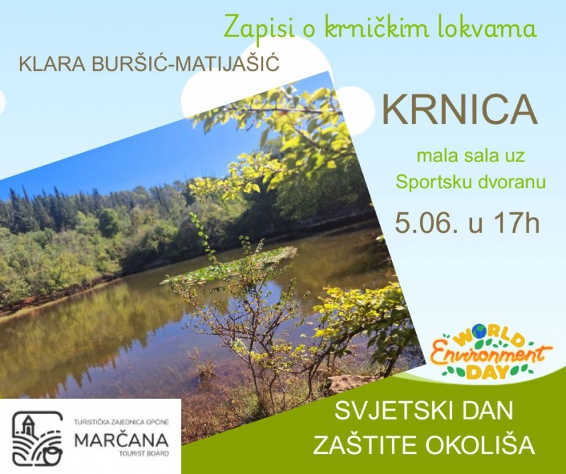 Ovog četvrtka, 5. lipnja, obilježava se Svjetski dan zaštite okoliša. Tim će se povodom u maloj sali pored Sportske dvorane u Krnici s početkom u 17 sati održati predstavljanje recentnog rada umirovljene profesorice Klare Buršić Matijašić naslova "Zapisi o krničkim lokvama".