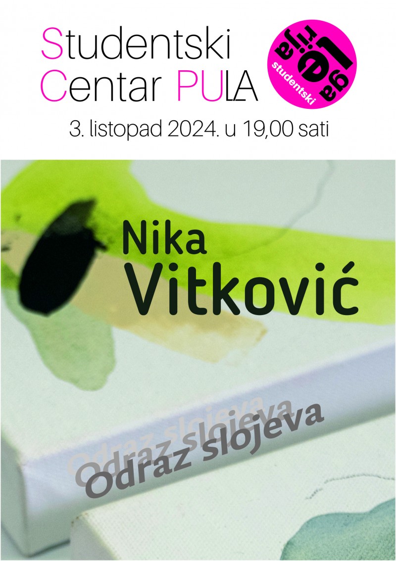 Svi zainteresirani pozvani su na otvorenje izložbe slika pod nazivom "Odraz slojeva" akademske umjetnice Nike Vitković, u četvrtak, 3. listopada, u galeriji Studentski (Preradovićeva 9, Pula) s početkom u 19 sati.