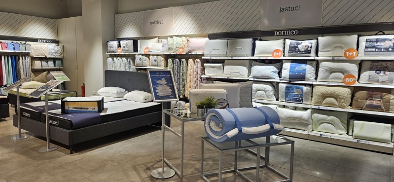 Novo Dormeo Home prodajno mjesto u Max Cityju u Puli nudi pažljivo odabran asortiman proizvoda za potpuno iskustvo spavanja, od visokokvalitetnih, udobnih i potpornih madraca do različitih vrsta nadmadraca, klasičnih ili anatomskih jastuka, pokrivača za one koji spavaju na toplom ili hladnom, zaštitnih navlaka za madrace, posteljina, modernih okvira za krevet pa čak i električnih podesivih kreveta. Dormeo donosi rješenja za svaku spavaću sobu i svakog spavača po pristupačnim cijenama.