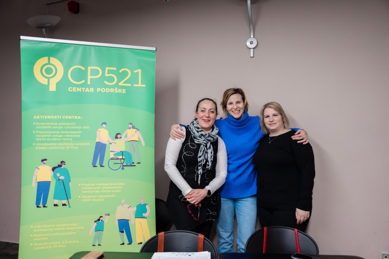 Centar podrške CP521 pruža socijalne usluge savjetovanja i pomaganja, organiziranja različitih aktivnosti i psihosocijalne podrške. Objedinjava pri tome sve pružatelje socijalnih i zdravstvenih usluga s područja Grada Pule i Grada Vodnjana te općina Medulin, Marčana, Ližnjan, Svetvinčenat i Barban, da bi se što učinkovitije pružale informacije korisnicima s jasno definiranim obvezama za provođenje određenih usluga.
