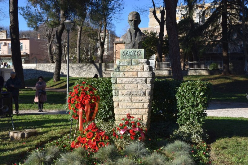 U Huguesovom parku u Puli danas je prigodno obilježena 79. godišnjica smrti velikana znanosti, slavnog hrvatskog izumitelja Nikole Tesle. U znak sjećanja na velikog znanstvenika u ime Grada Pule cvijeće je položio zamjenik gradonačelnika Pule Bruno Cergnul te predstavnici SKDI "Nikola Tesla" i Vijeća srpske manjine Istarske županije.