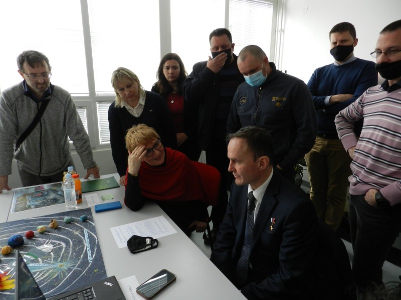 Po ulasku u IOS kozmonaut Ryazanski sa zanimanjem je pogledao prigodnu izložbu slika koje su na temu čovjekova leta u svemir pripremili učenici osnovnih škola iz nekoliko hrvatskih gradova. Sve je koloritne slike Ryazanski potpisao a one su sutradan vraćene svojim autorima. AUV tim se zahvaljuje svim sudionicima a posebice ruskim sunarodnjacima, njihovim profesorima, mentorima na iznimno aktivnom i vrijednom sudjelovanju u Tjednu kozmonautike održanom od 12. do 18. travnja u Istarskoj županiji.