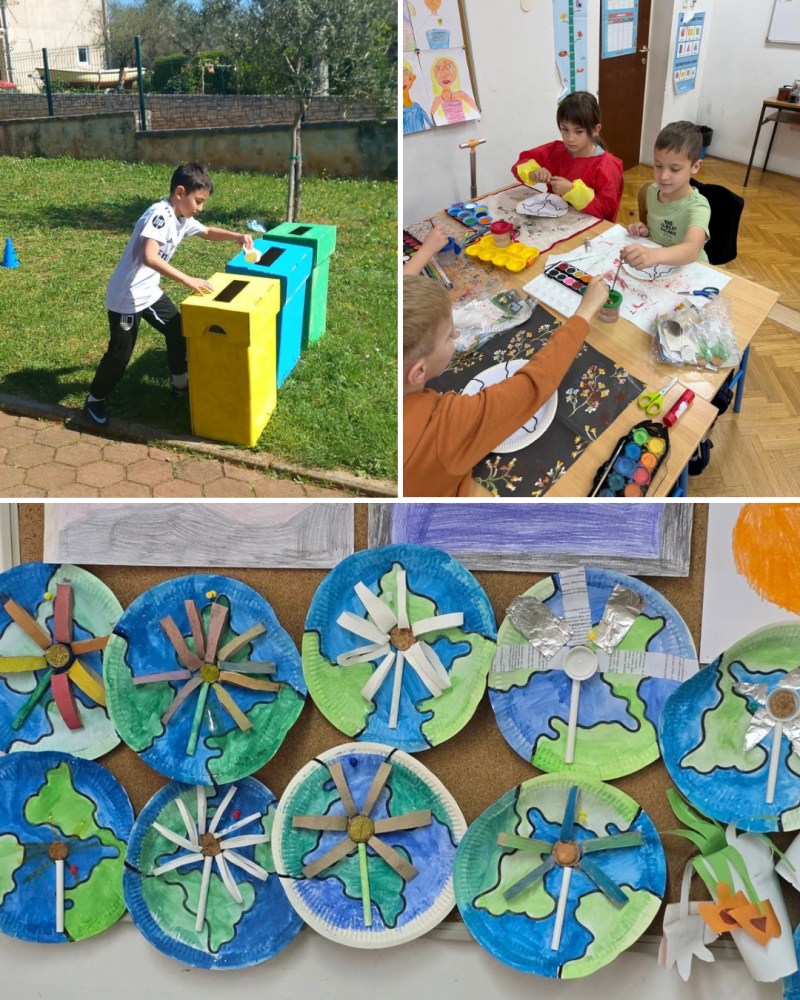 Sudjelovali su u ciljano osmišljenim aktivnostima sa zajedničkom temom "Od smeća do cvijeća". Pod ovim maštovitim i znakovitim nazivom djeca su najprije poslušala motivacijsku priču s epilogom koji kaže da kada čuvamo planet on nam vraća ljepotom. Nakon priče održana je likovna radionica u kojoj su djeca uživala izrađujući cvijeće od korištenih i recikliranih materijala, što je odličan primjer za sve, i male i velike, da mnogo toga umjesto da završi na otpadu može dobiti novu uporabnu i estetsku vrijednost. Osim radionice organizirana je i štafetna igra koju je osmislila i vodila odgojiteljica Monika Popović. Ovaj izvrstan vid zabave imao je i snažnu edukativnu svrhu, s obzirom da su djeca, među ostalim, kroz štafetnu igru imala zadatak pravilno razvrstati otpad u odgovarajuće kante.