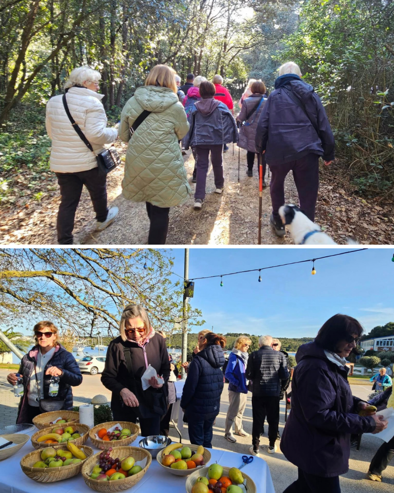 Nakon ugodne šetnje, svi sudionici su se mogli okrijepiti u predivnom ambijentu lučice Portić u Banjolama, gdje su nas dočekali more, sunce i zdrava zakuska. U caffe baru Paltana uživali su u sezonskom voću, vodi, čajevima i sokovima – zaslužena pauza uz dobru atmosferu.