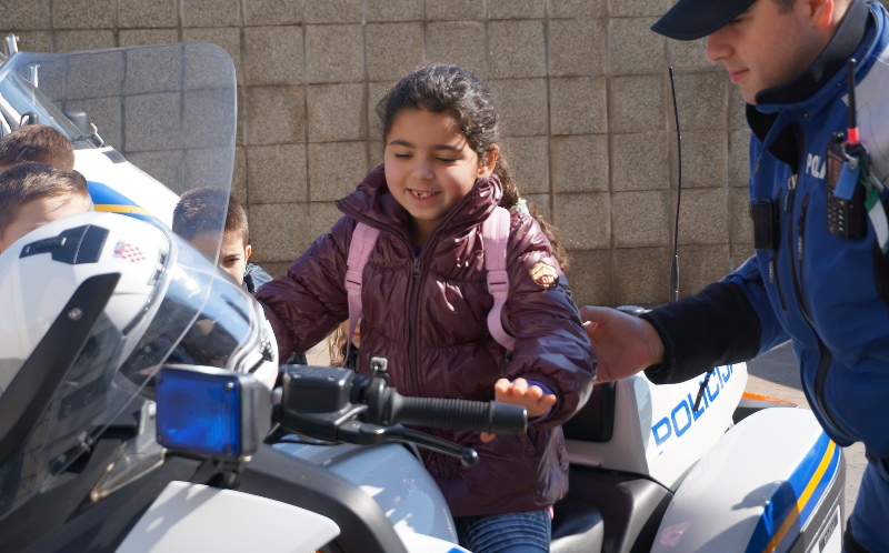 Nakon razgledavanja zgrade policije, policijski službenici su djeci pokazali i službena vozila, koja se koriste u svakodnevnom radu policije. Mališane su osobito razveselile bljeskalice i zvučna sirena na motociklu, a nisu propustili ni sjesti na službeni motocikl i slikati se za uspomenu.