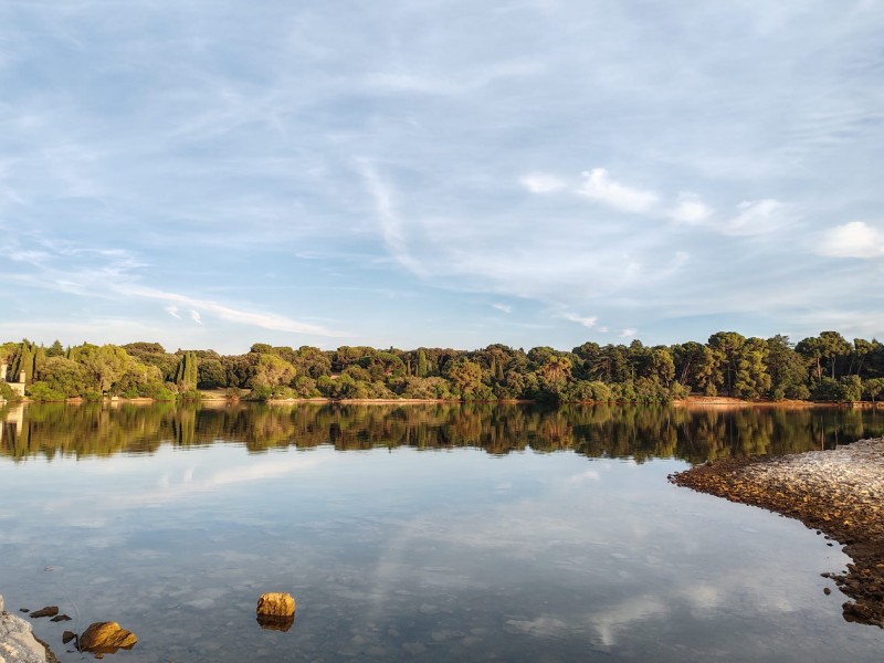 U dubokoj južnoj uvali otoka Veliki Brijun, iza rta Gromače, smješten je ptičji rezervat Saline. Ovaj rezervat prostire se na površini od 7 hektara, obiluje močvarnim biljem i tri jezerca. Najveće jezero, skriveno šašem, sadrži otočić s malom slamnatom kućicom, nekad omiljenim odmorištem Josipa Broza Tita.
