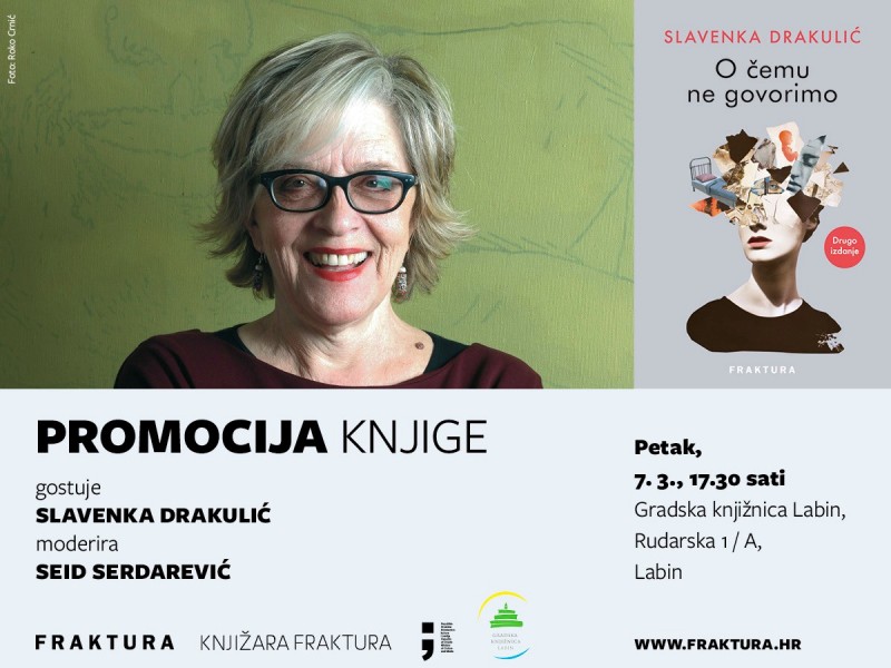 Gradska knjižnica Labin s radošću vas poziva na predstavljanje knjige „O čemu ne govorimo“ (Fraktura, 2024.), jedne od naših najpoznatijih i najprevođenijih spisateljica i novinarke, Slavenke Drakulić.