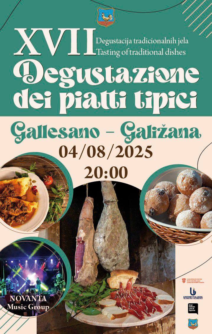 S početkom u 20 sati, zajednica Talijana Galižana poziva na 17. Degustaciju tradicionalnih jela Galižane. Očekuju nas prave delicije, i slane i slatke, a za glazbu je zadužen Novanta Music Group.