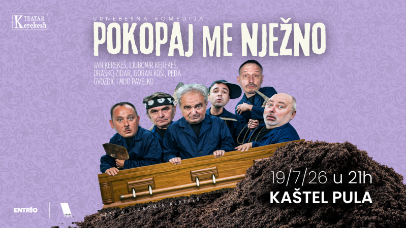 Za ljubitelje pravog kazališta i ove godine je "Kazališno ljeto na Kaštelu" priredilo dvije prave hit predstave, uz puno smijeha i razbibrige. Urnebesna komedija Kerekesh Teatra "Pokopaj me nježno" gostuje ovo ljeto, 19.07. u 21 sat na pulskom Kaštelu, a mjesec dana prije, gledati ćemo još jednu hit predstavu "Žene na rubu" i to 12. lipnja u 20,45 sati.