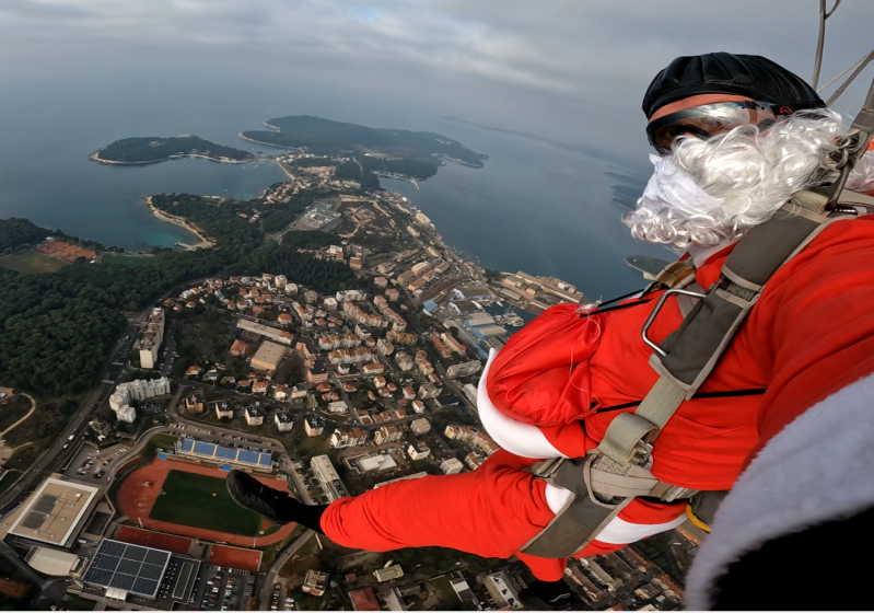 Uz potporu Turističke zajednice Grada Pule, u sklopu programa Advent u Puli, u organizaciji Aerokluba Cumulus, danas je na stadionu ŠRC Veruda održan tradicionalni program 'Padobranski Djed Mraz', koji se neprekidno provodi od 2014. godine i tijekom godina je izrastao u jedan od najprepoznatljivijih i najiščekivanijih adventskih događaja u gradu.