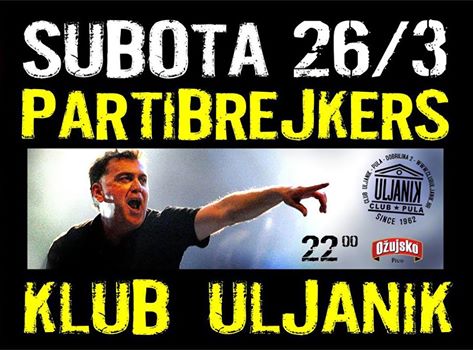 U subotu, 26. ožujka 2016. u klubu Uljanik nas očekuje veliki rock'n'roll spektakl, legendarni Partibrejkersi nam stižu otprašiti sve najbolje iz dosadašnje karijere, a isto tako i predstaviti novi album "Sirotinjsko carstvo" koji zvuči odlično. (Rex)