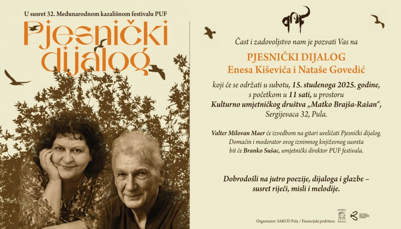 Uoči 32. Međunarodnog kazališnog festivala PUF, ovog će se subotu, 15. studenoga, s početkom u 11 sati, u prostoru Kulturno-umjetničkog društva “Matko Brajša Rašan” u Sergijevaca 32, održati poseban Pjesnički dijalog.