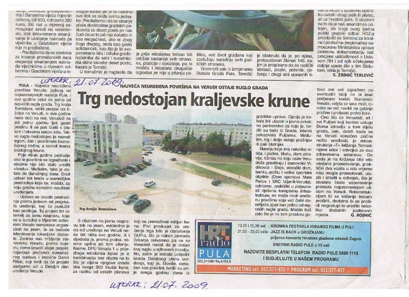 Povijest jednog od najprepoznatljivijih trgova u Puli, Trga kralja Tomislava, oživjela je zahvaljujući rijetkim i do sada neviđenim fotografijama snimljenih tijekom 2008. i 2009. godine. Fotografije, koje su pronađene u osobnom arhivu stanarke obližnje zgrade, gospođe Dušanke Trišović, svjedoče o dramatičnim promjenama koje je trg doživio tijekom proteklog desetljeća.