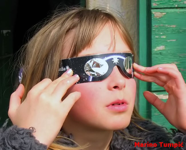 Gledanje pomrčine Sunca golim okom a još gore dalekozorom ili teleskopom bez adekvatnog filtra prouzročiti će sigurno, trajno i nepopravljivo oštećenje oka, uključujući i sljepilo!