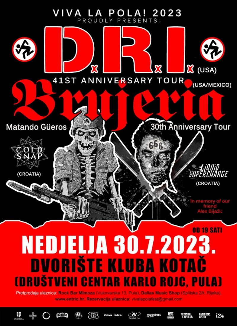 Kroz gotovo dva desetljeća postojanja, i dolaska mnogih velikana punk, hardcore, metal scene: Biohazard, Madball, Agnostic Front, Voivod, Extreme Noise Terror i dr, za svoje 19. izdanje, „Viva La Pola!“ najavljuje te po prvi puta na ove prostore dovodi combo uz dvije legendarne, svjetski poznate grupe, D.R.I. & BRUJERIU. Ovo ljeto, Pula će definitivno biti izletištem, godišnjim odmorom te središtem, brojnih zaljubljenika u žestoki zvuk i pripadajuće koncertne poslastice, za koje već sada znamo da će sukladno najavama, pristizati iz svih dijelova Hrvatske, te mnogih drugih zemalja.