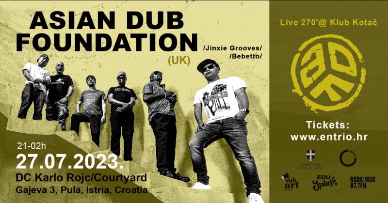 Koncert će se održati u unutrašnjem dvorištu Rojca, kod Kluba Kotač, u četvrtak 27. srpnja! Vrata se otvaraju u 21 sat, a osim ASIAN DUB FOUNDATION s vama su tu i Jinxie Grooves i Bebetto!