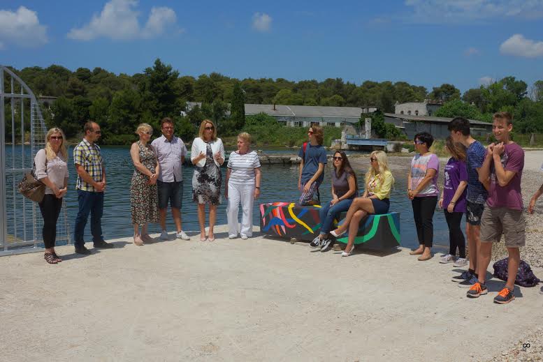 Projekt „Mandrač“ pokrenut je na inicijativu pulske umjetnice Roberte Weissman Nagy i bivše učenice OŠ Veli Vrh Petre Kancijanić. Osmišljen je na način da se oživi lučica Mandrač nasuprot željezničke stanice gdje su se vezivale batane, pasare i mali ribarski brodovi. Projekt je započeo od danas postavljanjem prve klupe oslikane dječjim radovima u lučici. Rex/FOTO: Safet Omerović Basso