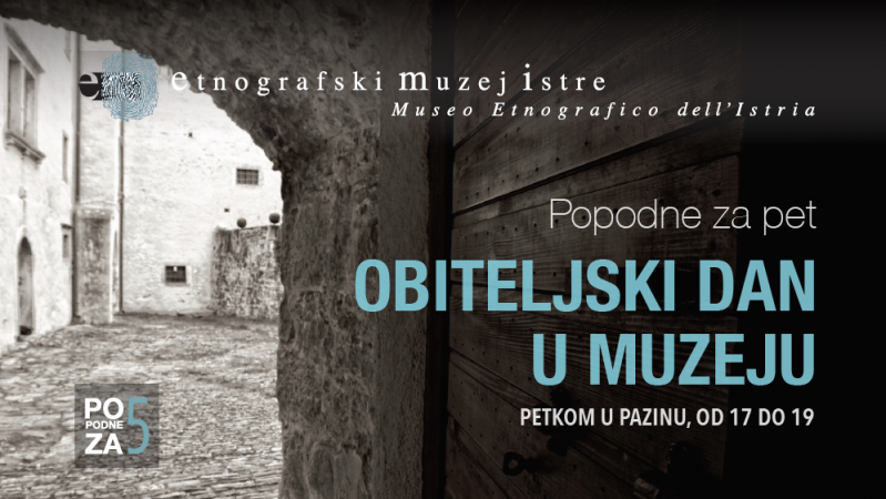 Mnoge stvari prolaze, a da ih i ne stignemo doživjeti, posjetiti. Stoga, Etnografski muzej Istre – Museo etnografico dell'Istria, kako bi posjetiteljima ponudio mogućnost drugačijeg provođenja slobodnog vremena, ovog proljeća kreće s novim programom Popodne za pet – obiteljski dan u muzeju. Program je namijenjen obiteljima koje svoje popodne žele provesti u novom i inspirativnom okruženju. Cilj nam je zajedničko druženje svih generacija koje se naslanja na tradicijska obiteljska okupljanja. Djecu, mame i tate, none i noniće, kroz priče i kreativno stvaranje povezat će učenje o baštini.