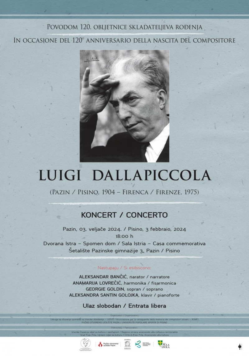 Koncertom u Dvorani Istra Spomen doma Pazin, u subotu 03. veljače obilježit će se 120. obljetnica rođenja velikog kompozitora rođenog u Pazinu. Nastupit će Aleksandar Bančić kao narator, Anamarija Lovrečić na harmonici iz Poreča, sopranistica Georgie Goldin iz Pule i Aleksandra Santin Golojka iz Rovinja.
