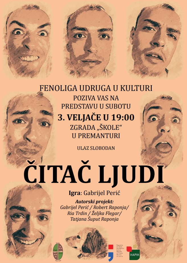 FENOLIGA, udruga u kulturi poziva vas na predstavu ''Čitač ljudi'' ovu subotu, 3. veljače u 19 sati, Premantura ("škola" na placi).