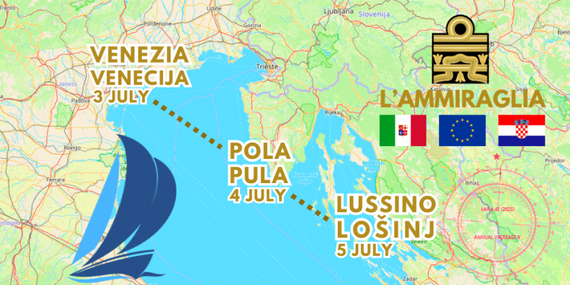 Danas, 18. lipnja 2025., u Komunalnoj palači u Puli predstavljen je značajan pomorski događaj – L'AMMIRAGLIA (“Admiralski brod”) VENECIJA – PULA – LOŠINJ, Adriatic Grand Tour. Riječ je o velikoj prekograničnoj regati koja će se održati od 3. do 5. srpnja 2025. godine, a čiji je cilj promicanje suradnje i prijateljstva između jadranskih obala. Događaj spaja regije Veneto, Istru i Kvarner kroz zajedničke vrijednosti: sport, održivost, europsku povezanost, kulturu, uključivost, izvrsnost i promociju teritorija.