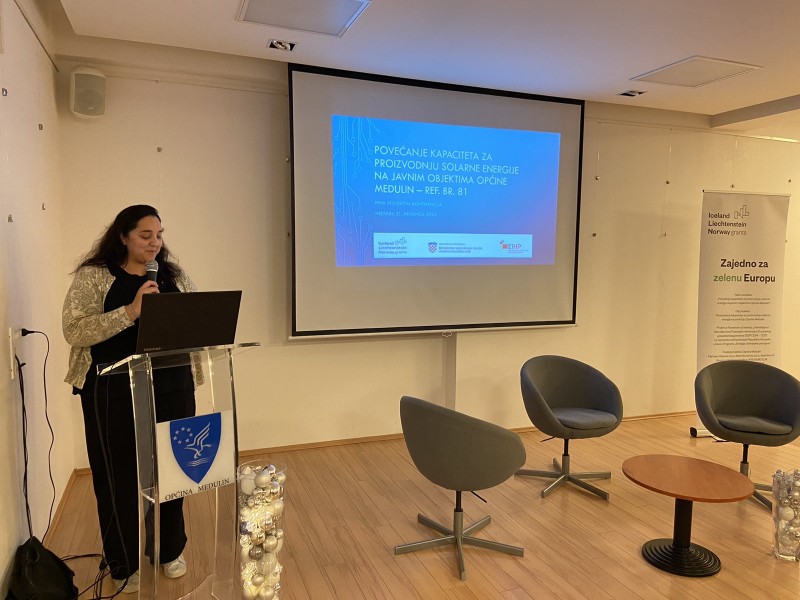 U multimedijalnom centru 3MC, 21. prosinca 2022. godine u Medulinu održana je 1. konferencija projekta „Povećanje kapaciteta za proizvodnju solarne energije na javnim objektima Općine Medulin“. Riječ je o projektu za koji je Općini Medulin odobreno financiranje od Islanda, Lihtenštajna i Norveške kroz financijski mehanizam Europskog gospodarskog prostora (EGP) 2014-2021., uz nacionalno sufinanciranje Republike Hrvatske, u iznosu od 346.893 EUR-a bespovratnih sredstava u okviru Programa „Energija i klimatske promjene“. Ukupna vrijednost projekta iznosi 408.110 eura dok je stopa sufinanciranja visokih 85 %.