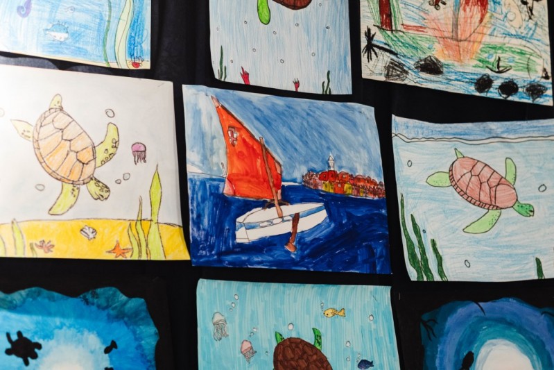 Likovni radovi nastalih na interaktivnoj naracijsko-pripovjednoj radionici “Kornjača Katarina -Tarta Caterina” održanoj povodom prošlogodišnje Noći muzeja te radovi inspirirani Sv. Eufemijom i Rovinjem učenika 2.a razreda OŠ "Vladimira Nazora" pretvorili su galeriju muzeja u idealno mjesto za pripovijedanje priče o kornjači Katarini u dva termina.