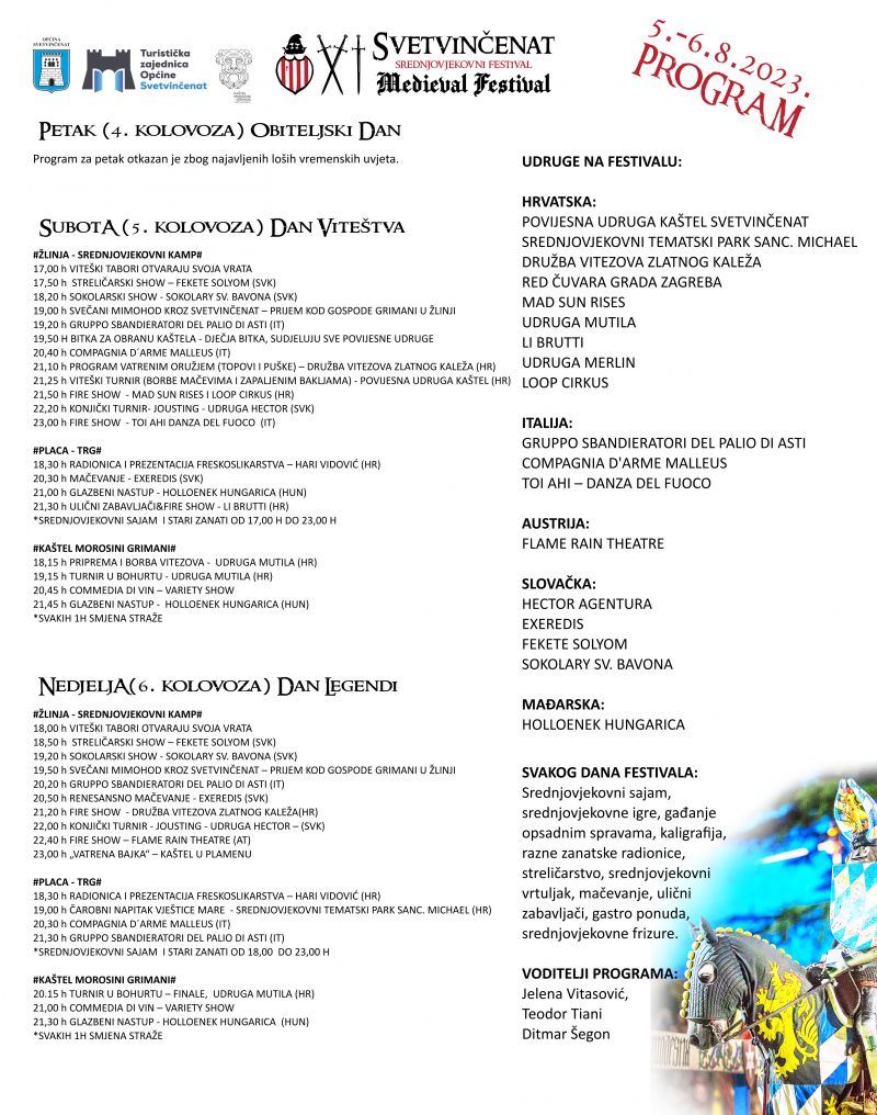 Novi program možete pogledati u nastavku, a možete ga još potražiti na facebook stranici Srednjovjekovni festival Svetvinčenat, te na službenoj stranici festivala tz-svetvincenat.hr .