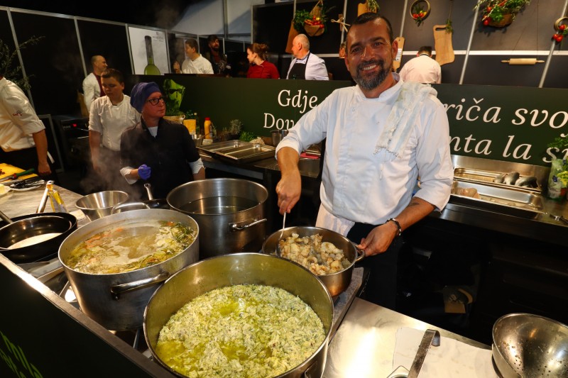 "Napravili smo njoke sa šugom od plavog raka, a gore smo tostirali malo mendula. Pijat je stvarno bio dobar, podijelili smo više od 200 porcija. Nakon toga pripremali smo filet brancina s pireom od čičoke i tikvica. Jako fino", kazao je David Skoko.