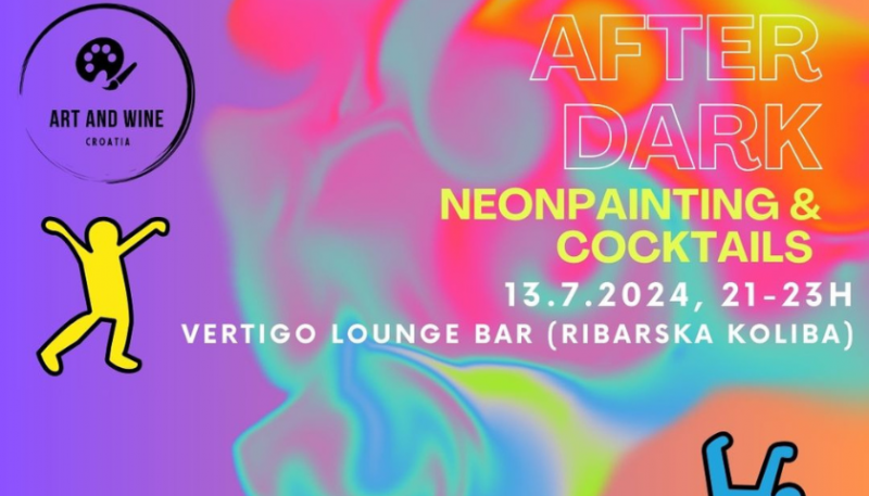 U subotu, 13. srpnja 2024. godine, od 21 do 23 sata, kreativni studio Art and Wine Pula organizira After Dark, prvu neon painting zabavu uz koktele u posebnom ambijentu Vertigo lounge bara (Ribarska koliba) s pogledom na more. Ovaj jedinstveni događaj, nadahnut disko zabavama 80-ih i radom slavnog umjetnika Keitha Haringa, spaja umjetnost i zabavu.