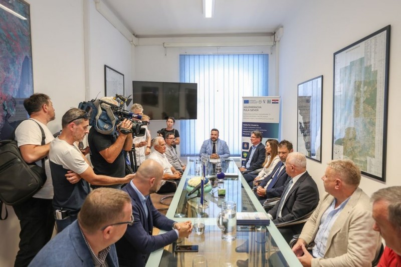 U prostorijama Vodovoda Pula održano je svečano potpisivanje i uručenje Ugovora o izvođenju radova Izgradnja i rekonstrukciju sustava odvodnje i vodoopskrbe u sklopu projekta Poboljšanje sustava vodoopskrbe i odvodnje i pročišćavanja otpadnih voda u aglomeraciji Pula Sjever, sufinanciranog iz Nacionalnog plana oporavka i otpornosti 2021. – 2026.