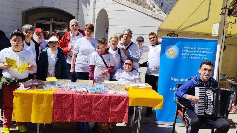 Na Gradskoj tržnici Pula danas su predstavnici Udruge roditelja osoba s kombiniranim smetnjama u psihofizičkom razvoju Istarske županije – Pula u povodu Nacionalnog dana osoba s intelektualnim teškoćama, svojim promotivnim štandom i pjesmom uveseljavali prolaznike i upoznavali ih sa svojim radovima, aktivnostima i planovima, te dijelili letke i promidžbene majice. Puljani su donacijama rado podržali rad udruge i uspješno je uspostavljena interakcija. Korisnici udruge su bili obuzeti pozitivnim emocijama i sa radošću građanima pokazali svoje radove.