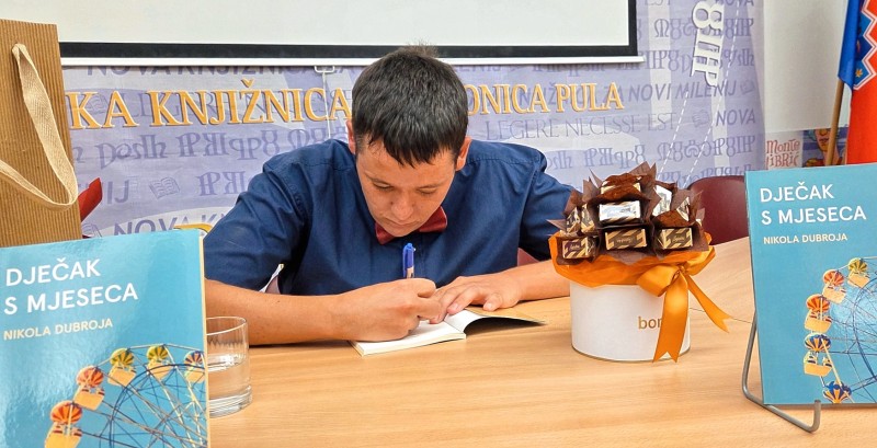 U Središnjoj knjižnici u Puli u srijedu, 24. rujna, održana je promocija zbirke poezije Dječak s Mjeseca, pjesničkog prvijenca Nikole Dubroje. Mladi pulski autor publici je približio svoj poetski svijet kroz odabrane stihove, a u razgovoru su mu se pridružile urednica zbirke Frida Šarar i moderatorica Sanja Vučković, predstavnica izdavačke kuće CeKaPe.