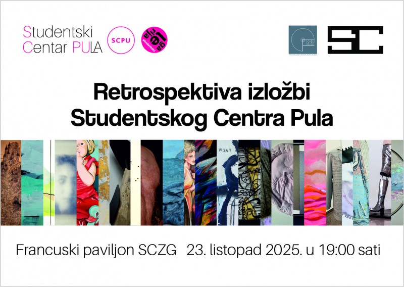 Studentski Centar Pula predstavlja retrospektivu svog sedmogodišnjeg izložbenog programa u Francuskom paviljonu Studentskog centra Zagreb. Otvorenje izložbe zakazano je za četvrtak, 23. listopada u 19 sati, a izložba će biti otvorena do 31. listopada. Radno vrijeme je od ponedjeljka do petka od 12 do 20 sati, dok će vikendom posjetitelji moći razgledati radove od 10 do 13 sati.