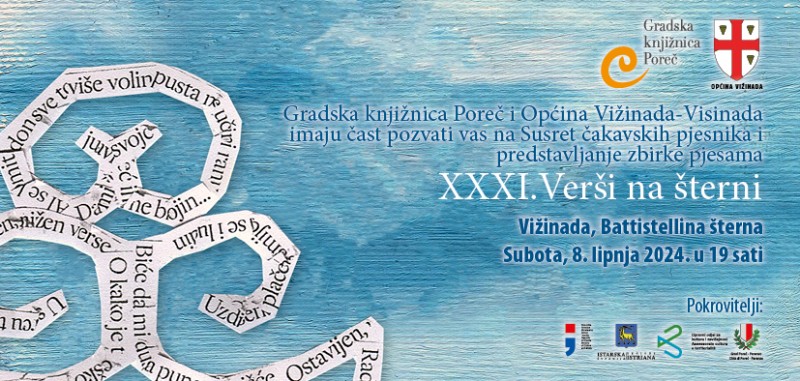 Gradska knjižnica Poreč i Općina Vižinada - Visinada pozivaju vas na XXXI. Susret čakavskih pjesnika VERŠI NA ŠTERNI i promociju istoimene zbirke pjesama, koji će se održati u subotu, 8. lipnja 2024. godine u 19 sati u Vižinadi na Battistellinoj šterni.