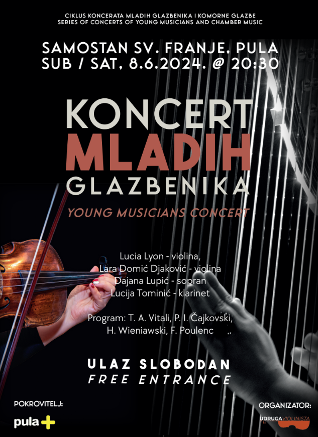 Riječ je već o tradicionalnom koncertu koji okuplja i potiče mlade glazbenike na početku svojih karijera, i to s područja Istarske i Primorsko Goranske županije. Koncert će se održati sutra, 8. lipnja u 20:30 u Crkvi sv. Franje u Puli, s početkom u 20:30.