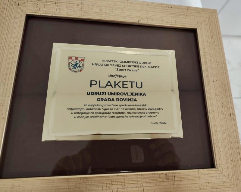Udruga umirovljenika grada Rovinj dobitnica je vrijednog priznanja, Plakete “Sport za sve”, koja je uručena Mati Damijaniću za postignute rezultate i doprinos razvoju sportskih aktivnosti unutar Udruge. Kako ističe zamjenica predsjednice Marinella P. Bašić, riječ je o velikom priznanju za trud koji članovi kontinuirano ulažu, osobito kroz sportske sekcije poput boćanja. Dodaje kako ova nagrada potvrđuje da su njihovi rezultati i angažman prepoznati i izvan same Udruge.