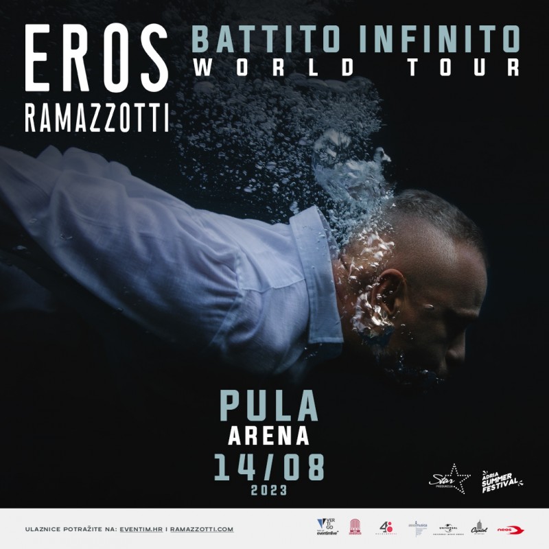 Drugi dan Adria Summer Festivala rezerviran je za jednu od najvećih glazbenih zvijezda današnjice, neponovljivog Erosa Ramazzottia koji se, nakon gotovo 20 godina vraća u veličanstvenu Arenu Pula, 14. kolovoza u sklopu svoje svjetske turneje BATTITO INFINITO.