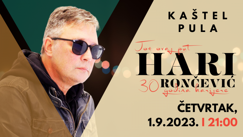 Slavljenički koncert Hari Rončevića "Još ovaj put 30 godina karijere" održati će se i na pulskom Kaštelu u petak, 1. rujna u 21 sat, a njime će majstor emotivnih stihova obilježiti 30 godina iznimno bogate kantautorske karijere.