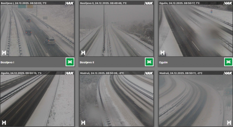 Snijeg je tijekom jutra zabijelio vrh Medvednice, a pada i u Gorskom kotaru, Lici te pojedinim dijelovima sjeverozapadne Hrvatske, gdje se mjestimice već stvara snježni pokrivač. U tim krajevima Badnjak će imati onaj “pravi”, zimski ugođaj, uz temperature oko nule i pahulje koje bi se mogle zadržati i tijekom dana.