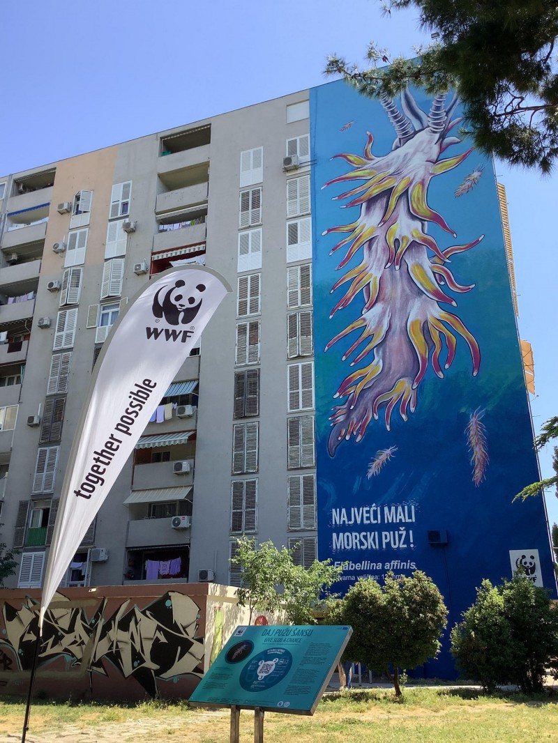 Split je dobio mural najvećeg malog morskog puža na svijetu. I pužić je oživio! Ovo sićušno biće veličine tek 12 mm, od izuzetne je važnosti za ravnotežu morskih ekosustava. Pod stalnom je prijetnjom od betonizacije i nasipavanja plaža. Umjesto da beton dolazi njemu, uz pomoć WWF-a, svjetske organizacije za zaštitu prirode on sada krasi 300 kvadrata pročelja zgrade. Svaka vrsta ima svoje mjesto u ekosustavu – na nama je da ih sačuvamo. Na koncu, o njima ovisi i naš opstanak na Zemlji.
