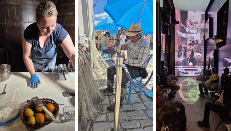 Tijekom obilaska, koji je trajao otprilike 2 sata i 30 minuta, sudionici su imali priliku posjetiti jedinu postolarsku radionicu u Rovinju smještenu u ulici Zdenac, originalnu rovinjsku konobu Spacio Matika u ulici Vladimira Švalbe gdje su sudjelovali u radionici izrade slastica – rovinjskih fijoka. U komuzeju Kuća o Batani mogli su saznati više o rovinjskoj tradiciji ribarstva i batane, a u neposrednoj blizini ekomuzeja predstavljeno je krpanje ribarskih mreža i izrada/popravak brodice i pletenje demižana te vrša. U Kući rovinjskog pelinkovca saznali su sve o proizvodnji čuvenog likera rovinjskog pelinkovca i ostalih likera koji se proizvode prema tradicionalnoj stogodišnjoj recepturi.