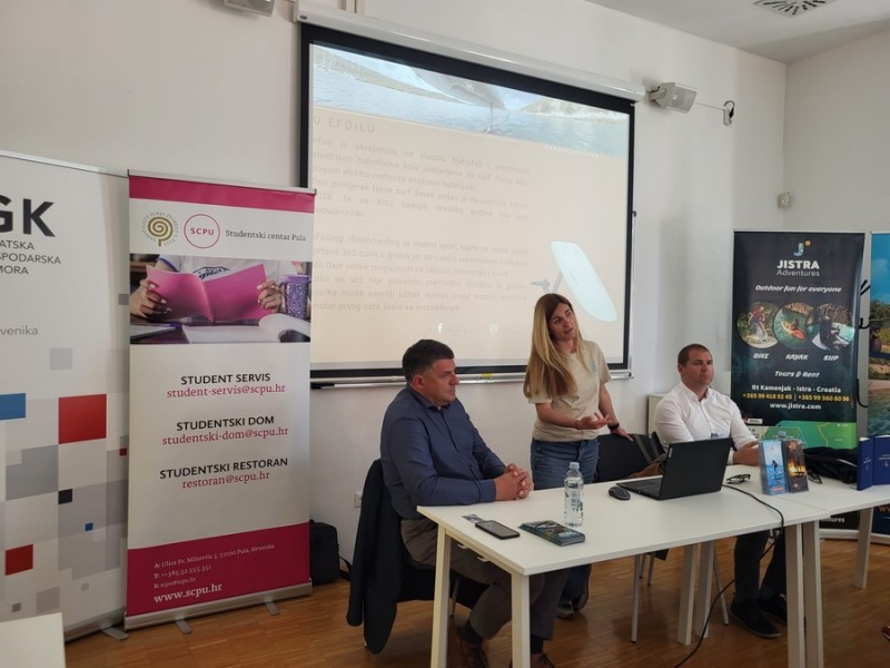 Trendove u pustolovnom turizmu s puno entuzijazma predstavili su Mladen Draguzet (Istra adventure, Barban), Maja Jurić (Lull eFoil, Pula) i Toni Brkić (Croatia Sailing, Pula).
